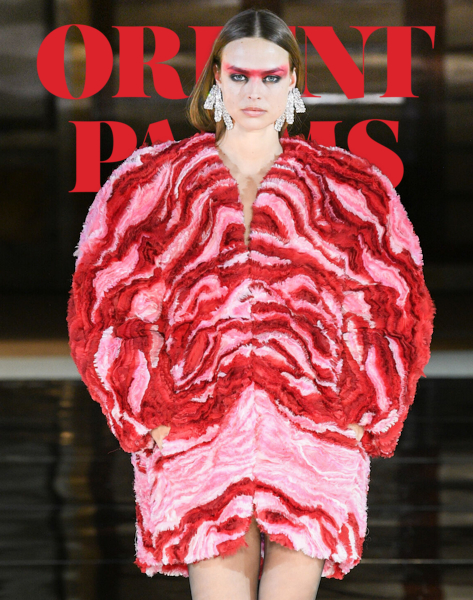 As she explains in her show notes, Nicky Zimmerman used to make her own clothes as a teenager, thus the "cutting and stitching" feel created by the white bands that also remind us of the 80’s street style. The diagonal positioning of these white bands accentuate the swirly flamenco style and add movement.