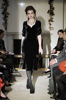 Caroline Charles embraces the British & European sense of heritage in a modern style: relaxed, low-key, sumptuous, polished. The collection is a rich blend of Renaissance to Bloomsbury influences: leopard, tartan, paisley, fair isle, rose prints, herringbone tweeds, donegal knits, hand embroidery, beading, lamé glamour. |